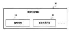 図9は、機能制御情報40のさらに他の例を示す説明図である。図9に示すように、機能制御情報40は、図3に示した機能制御内容41に加えて、機能制御情報40の発信者や機能制御情報40の内容が他者に改竄されていないことを保証するための署名等を記述した信用情報43を含む。  FIG. 9 is an explanatory diagram showing still another example of the