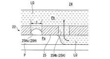 また、本実施形態において、第1液体回収機構20は、多孔部材25の下の空間の圧力Pa、孔25Hの直径d、多孔部材25(孔25Hの内側面)の液体LQとの接触角θ、液体(純水)LQの表面張力γは一定として、第1液体回収部21の吸引力を制御して、上記(3)式を満足するように、多孔部材25の上の流路空間の圧力を調整している。ただし、上記(3)式において、(Pa−Pb)が大きいほど、すなわち、((4×γ×cosθ)/d)が大きいほど、上記(3)式を満足するような圧力Pbの制御が容易になるので、孔25Ha、25Hbの直径d、及び多孔部材25の液体LQとの接触角θ(0<θ<90°)は可能な限り小さくすることが望ましい。  In the present embodiment, the first