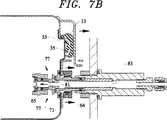 図7Aは、カップリングボデイ63とカップリングのオーリング64と前部ポペットバルブ65と前部ポペットバルブのオーリング67と後部ポペットバルブ69と前部ポペットフェースシール71と後部ポペットフェースシール73と圧縮ばね75とを含む、図6のカップリングの実施形態の部材を示す。その普通の状態において、圧縮ばね75は、前部ポペットバルブ65を前部ポペットフェースシール71に、後部ポペットバルブ69を後部ポペットフェースシール73に、前部ポペットバルブのオーリング67をカップリングボデイ63に付勢する。この構成は、カップリングの開口77をシールして、カセット収容物を外側から遮断する。
