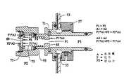 また、カップリング45は、カセット蓋3の適切な閉鎖を可能とし、停電あるいは使用者の介入があった場合に、加圧されたカセットをシステムから外すのを可能とするために、圧力逃し装置として機能する。つぎに、図8を参照すると、カセット蓋3を閉じるときに、第1リップ17がカセットトレー壁35に接触すると、シーリングが有効である(図3B参照)。カセット10内の空気は、カセット蓋3がさらに閉じるのに抗する。カップリング45の圧縮ばね75は、所定のカセット圧力を克服するように設計されている。カセット圧力が所定の限度を越えると、圧縮ばね75は、圧縮され、これにより、後部ポペットバルブ69が後部ポペットフェースシール73から離れる方向に移動するのを可能とし、したがって、カセット圧力が逃げる通路を形成する。カップリングのこの圧力逃し特性は、カセットが加圧され、障害が滅菌サイクルであった場合にも適用され、カセットの除去が望ましいとみなされる。圧力逃し装置は、カセット壁に別個の弁として、あるいは、上述のようにカップリングの一部として設けることができる。