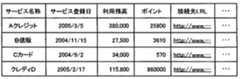 また、FAM13は、移動体端末1で利用可能なクレジットサービスの管理のために、利用可能なクレジットサービスとその利用可能なクレジットサービスに関する付属情報とを関連づけたテーブルを有する。このテーブルは、例えば図3に示すようなものであり、クレジットサービスであるサービスA〜Dと、このサービスA〜Dに関連する付属情報(例えば、サービス登録日、利用残高、ポイント、接続先URLなど)とが関連づけられている。このように、FAM13に図3に示すようなテーブルを備えることにより、自装置で利用可能なクレジットサービスを管理することができ、ユーザが希望するサービスを簡単な操作で利用することができる。この場合、このテーブルで管理するサービスを電子決済に関係するサービスに限定したり、他のサービスと混合して管理する際に電子決済サービスのみを抽出できるような拡張子や識別子を付けておくことにより、電子決済の際の外部R/W2からのポーリングに対応して電子決済に関するサービスのみを簡単に抽出することが可能となる。なお、テーブルにおいて管理する付属情報は任意であり、図3に示す項目以外の事項を管理しても良い。また、移動体端末1に新たなクレジットサービスが追加された場合には、クレジットサービス提供者が図3に示すテーブルのサービス名称の項目に登録され、そのサービスに関連する付属情報が登録される。さらに、FAM13は、このテーブルで管理されている情報を用いて、トルカデータ管理部14で管理するトルカスニップデータを編集する。例えばトルカスニップデータにテーブルに登録されている情報を付加する。これにより、移動体端末1に表示させるトルカスニップデータをユーザにとってより有益なトルカスニップデータにすることができる。 Further, the