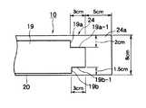 そこで、円盤状導体板の外部形態に関して、図2に示した平板状の円盤状導体板19Aとは異なり、図4に示すような構造を採用する。図4に示した円盤状導体板は、所定の厚みを与えかつ外部形態に変更を加えることによって、マイクロ波の反射が生じないようにインピーダンス整合の機能を有するように形成されている。図4に示した円盤状導体板の外部形態は、図1に示した円盤状導体板19の外部形態と同じである。そこで図4に示された円盤状導体板にも符号19を付している。この構造によれば、図4および図5に示されるごとく、例えば円盤状導体板19の上面および下面の周縁部に段差19a,19bを形成し、かつ後述するアンテナ設計法に従ってその寸法を適正に設計することによってインピーダンス整合を行っている。この例では、所定条件で円盤状導体板19の上面および下面に段差19a,19bを設けることにより、図3で動作原理を説明した短絡3dB方向性結合器42と同等の高周波電力の伝搬特性を実現している。すなわち、アンテナ10の円盤状導体板19の上面および下面に所定条件の段差19a,19bを設けることによって短絡3dB方向性結合器の構造を実現している。ここで「所定条件」とは、前述としたものと実質的に同様に、アンテナ10の導波路24について全体構造としての1つの散乱行列Sを求め、段差19a,19bの高さ等の寸法を変化させ、散乱行列の反射係数S22が0になるようにすることである。換言すると、散乱行列の反射係数S22が0になるように各段差の高さ等を決定すると、当該段差の構造によって短絡3dB方向性結合器が導波路24に与えられることになる。このように例えば円盤状導体板19の上面および下面に所定条件の段差19a,19bを設けることで、インピーダンス整合がとられ、マイクロ波の反射の発生を防止し、マイクロ波を高率よく伝送し、電磁波放射部20からマイクロ波を効率よく放射することが可能となる。