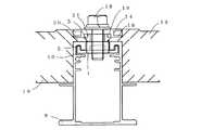 すなわち、本実施形態ではアース固定金具1のボルト受部7にボルト18が螺合するものを示したが、図7に示すようなアース固定金具1のボルト受部7にボルト23を下側より螺合させているアース固定金具22でも良い。これにより、押え部材12の貫通孔17との位置の調整が行い易くすることができる。  That is, in the present embodiment, the