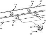 従来のプラスチック枠66と金属枠67の固定方法としては特殊ネジ61を用い、プラスチック枠66のネジ穴を長丸ネジ穴64として固定を行う方法を用いていた。長丸ネジ穴64は通常の円形とは異なり長丸型の形状を有している。長丸ネジ穴64は長丸型の形状であるため、プラスチック枠66の熱変形の影響を低減させることができるが、固定には長丸ネジ穴64を全て覆うことのできるような径のワッシャー62を有している特殊な形状の特殊ネジ64を用いて固定を行う必要があった。そのため汎用的なネジでは確実な固定を行うことができない。また特殊ネジ61は長丸ネジ穴64の長軸方向に関して位置的自由度を有しているため、該方向に関して位置決めを行うことができない。そのため別途位置決めのためのネジ穴をプラスチック枠66に設ける必要があった。As a conventional method of fixing the