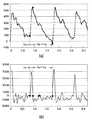 【図5】  本発明に係る動脈血圧測定装置の実施の形態において、(a)は赤外センサ法により得られた動脈波形、(b)はその動脈微分波形を示す。