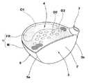 Particularly preferably, the total area S2a of the second opening of the opening area S2 (cm2), an opening area S1 of the first opening O1 (cm2), the ratio of (S2a / S1)0 .54 or more is desirable, and the upper limit is preferably0.98 or less, more preferably0.67 or less. Thereby, the opening area of the 1st opening part O1 and the 2nd opening part O2 is balanced, and the effect | action of weight reduction and the maintenance of rigidity of the crown