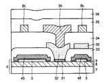第2の層間絶縁膜34およびビット線BLおよび/BL上には、第3の層間絶縁膜35が形成されている。この第3の層間絶縁膜35の所定位置には、コンタクトホールCHが開設されている。このコンタクトホールCHは中間層32の上方に開設されている。この第3の層間絶縁膜35上には、ボディ固定線30Bおよび30Cが形成されている。ボディ固定線30CはコンタクトホールCH上に形成され、中間層32と接触している。さらに、第3の層間絶縁膜35ならびにボディ固定線30Bおよび30C上には、第4の層間絶縁膜36が形成されている。  A third