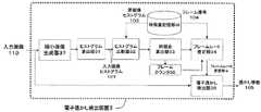 その一致の程度に基づき入力画像110のうち原画像ヒストグラム103と同期する点である同期点を求める。前後の各フレーム(若しくは同じシーン内の複数フレームの平均等)の原画像ヒストグラム103と、入力画像110のフレームの入力画像ヒストグラム107とを比較する。Based on the degree of coincidence, a synchronization point that is a point that is synchronized with the