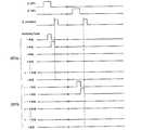 さらに、図3では、フリップフロップ回路204の入力部分に、信号を初期化するスイッチ206を設け、転送制御信号(S_ENABLEt)によって、当該スイッチ206のオン、オフを制御する。スイッチをオンすると、正論理の場合は強制的にL信号(負論理の場合はH信号)が書き込まれる。具体的には、書き込みを行う行に関してある列以降に書き込むビデオ信号が一行前に画素に書き込まれたビデオ信号と同じ場合に、転送制御信号を用いてスイッチ206をオンして強制的にL信号を書き込むことによって、スタートパルス信号から順に転送されてきた信号を初期化して当該列以降においてシフトレジスタ207での信号の転送を停止する。その結果、当該列以降において、第1のラッチ回路へのサンプリングパルスの出力が行われなくなり、当該列以降の第1のラッチ回路202へのビデオ信号の書き込みも行われない。従って、ある列以降において、シフトレジスタでの転送を停止することによりフリップフロップ回路204での充放電が無くなるため消費電力を低減することができる。また、ビデオ信号線へのビデオ信号の入力も停止することによって、第1のラッチ回路202へのビデオ信号の充放電が無くなるため消費電力を低減することができる。なお、ここでは、一列目のフリップフロップ回路の入力部にスイッチ206を設けていないが、設けた構造としてもよい。  Further, in FIG. 3, a