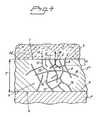 【図4】  インプラント本体上に生成された酸化物層のチャンネル網を示し、酸化物層が結合されたインプラントが部分的に示されている人体の骨および/または組織構造に適用され、酸化物層内に構造の方を向いた口構成を持つチャンネル網があることを示す線図表現の縦断面図である。