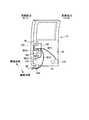 図には明示していないが、これら閉扉ラッチユニットCRおよび開扉ラッチユニットORは、いずれも従前のものと同様の構成を有したものであり、例えば車両本体Bに設けたストライカに歯合するラッチと、このラッチの移動を制御するラチェットとを備えて構成してある。 Although not explicitly shown in the figure, each of the door closing latch unit CR and the door opening latch unit OR has the same configuration as the conventional one, and meshes with, for example, a striker provided in the vehicle main body B. The latch includes a latch and a ratchet that controls movement of the latch.