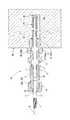 保護管20は、ハウジング装置7の筒手段11に対してコネクタ12、22を介して着脱自在に連結可能とされている。このため、ハウジング装置7のコネクタ12と、保護管20のコネクタ22は、相互に着脱自在なネジ手段24a、24bを設けており、螺着方向(締着方向)に対して次第に径を減じるテーパネジを形成することにより気密的に結合される気密結合手段を構成している。尚、図例の場合、コネクタ12のネジ手段24aを雄ネジとし、コネクタ22のネジ手段24bを雌ネジとしているが、その反対となるように形成しても良い。また、このようなテーパネジにより気密結合手段を構成する他、螺着時に圧縮されるシールリングにより気密結合手段を構成しても良い。 The