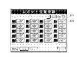 タッチパネル60に表示された起動画面においてメニューボタン115に指が触れると、システム制御装置50は、タッチパネル60に、図12に示すような操作メニュー画面を表示させる。操作メニュー画面には、ターンテーブル10の回転位置およびエクステンションアーム40の撮影角度θのデータ登録のための設置情報ボタン122と、カメラ制御用接点ON時間,OFF時間および回数の設定のためのカメラボタン123と、撮影時の原点(デジタルカメラ70の撮影角度θ,水平座標X,垂直座標Y)の設定のための原点設定ボタン124と、ターンテーブル10の水平分割数,ストロボ有無,オート撮影の時の次ステップ移動のインターバル時間の設定をするターンテーブルボタン125と、撮影時のデジタルカメラ70の撮影角度θを設定する角度設定ボタン126と、ターンテーブル10およびデジタルカメラ70の水平,垂直,回転速度の設定のための速度設定ボタン127と、被写体90を自動で写真撮影するときに使用するフルオートボタン128と、被写体90を1枚写真撮影する毎に確認しながら写真撮影するときに使用するセミオートボタン129と、被写体90の画角やデジタルカメラ70の位置を確認するときに使用するマニュアルボタン130とが設けられている。なお、起動画面ボタン(操作メニューアイコン)121に指を触れると、システム制御装置50は、タッチパネル60の表示を起動画面(図11参照)に切り替える。  When a finger touches the