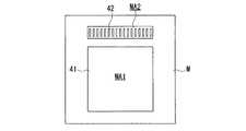 図5は本実施形態に係るマスクMの平面図である。図5において、マスクMはデバイスを形成するためのデバイスパターン(第1パターン)41が形成された第1パターン形成領域MA1と、ラインパターンが所定ピッチで形成されたライン・アンド・スペースパターン(第2パターン)42が形成された第2パターン形成領域MA2とを有している。デバイスパターン41は、後述する基板P上の第1領域AR1に転写され、ライン・アンド・スペースパターン(L/Sパターン)42は、第1領域AR1とは異なる基板P上の第2領域AR2に転写されるようになっている。  FIG. 5 is a plan view of the mask M according to this embodiment. In FIG. 5, a mask M includes a first pattern formation region MA1 in which a device pattern (first pattern) 41 for forming a device is formed, and a line and space pattern (first pattern) in which line patterns are formed at a predetermined pitch. 2 pattern) 42 in which 2nd pattern) 42 was formed. The