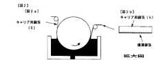 【図2】  図2aは、従来のキャリア箔を用いた電解箔の生産装置を説明するための概略側面図である。図2bは、図2aの生産装置を用いて作られた電解箔の構成を示す断面図である。