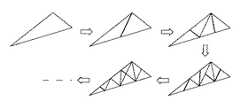 この三角形の細分化処理は、例えば、以下の(1),(2)で説明するように、三角形を最短の中線で分割する手法、或いは3辺の中点で分割する手法を用いる。