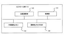 図1に示す例の顕微鏡1は、通常の顕微鏡装置を例にするものであり、複数の対物レンズ101を着脱可能に備え(尚、後述するように対物レンズが1つの場合も有り得る)、この複数の対物レンズ101のうちの任意の1つを電動で光路内に挿入させる為の電動レボルバ102、顕微鏡光源103、試料104を載せる為のステージ109、照明ユニット105、試料104からの光を観察者に導く鏡筒106、接眼レンズ107、AF動作を行う為のセンサであるAFユニット108、ステージ109を電動で上下させる焦準部110、観察者が顕微鏡1の各電動部の動作を指示する為の顕微鏡指示スイッチ111、各電動部を制御するコントロール部112等から構成される。コントロール部112は、例えば図2に示すように、CPU/MPU等である制御部131や比較演算部132、後述する本例の各電動部制御処理や比較判定処理を制御部131や比較演算部132で実行させる為の所定の制御プログラムや所定のアプリケーション・プログラムが格納されているROM等の不揮発性メモリ133、及びRAM等の揮発性メモリ134(以下、RAMと略称する)を有する。これより、コントロール部112は、コンピュータであるとも言える。そして、コントロール部112は顕微鏡装置に組み込むものに限らず、外部のパーソナル・コンピュータ等であってもよい。尚、制御部131と比較演算部132は、実際には同じCPUであってもよい。そして、上記所定の制御プログラムや所定のアプリケーション・プログラムを、CPU/MPU等が読み出し・実行することにより、後述する図9、図10、図13、図14に示すフローチャートの処理が実現される。また、不揮発性メモリ133又はRAM134には、後述する図8、図11、図15等のデータが格納され、これらデータを用いて上記フローチャートの処理が実現される。  The