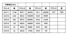 図8に、上記設定によって不揮発性メモリ133に格納された、各対物レンズ101のWD、焦点深度、AF有効範囲のデータテーブルを示す。観察者等が図7に示すデータを設定・入力したのであるから、図8のデータは基本的には図7と同じであるが、上記の通り設定する数値の単位が「0.01μm」であるので、例えば図7における650は、図8では65000となっている。尚、図8に示すAFPについては後述する。また尚、よく知られているように不揮発性メモリに格納されたデータは、電源遮断後も保持されることから、レボルバ部102aに装着されている対物レンズが交換されない限り、再設定の必要はない。  FIG. 8 shows a data table of the WD, the focal depth, and the AF effective range of each