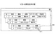 「実行中」とは、ジョブが実行されている状態である。「待機中」とは、ジョブが実行されるのを待っている状態である。この状態において、実行の順番が回ってくると、ジョブの状態は「実行中」になる。「エラー発生中」とは、ジョブの実行中に何らかのエラーが発生し、ジョブの実行ができなくなっている状態である。この状態において、エラーが取り除かれるとジョブが再開され、そのジョブの状態は「実行中」になる。 “In execution” means that the job is being executed. “Waiting” is a state of waiting for a job to be executed. In this state, when the execution order comes around, the job state becomes “in execution”. “Error is occurring” means a state in which an error has occurred during job execution and the job cannot be executed. In this state, when the error is removed, the job is resumed, and the state of the job becomes “running”.