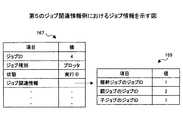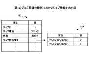 また、上記課題を解決するために、本発明は、所定の処理により発生するジョブに関するジョブ情報を表示するジョブ表示方法において、任意の一のジョブと当該一のジョブから派生する異種の処理内容に分けられた処理単位の細かい他のジョブとの関連を示すジョブ構造情報を受信するジョブ構造受信段階と、前記ジョブ構造情報に基づいて、前記ジョブ情報を表示するGUI表示段階とを有することを特徴とする。In order to solve the above-described problem, the present invention provides a job display method for displaying job information related to a job generated by a predetermined process, in an arbitraryone job anddifferent processing contents derived from the one job. A job structure receiving stage for receiving job structure information indicating a relationship with another job witha finely divided processing unit; and a GUI display stage for displaying the job information based on the job structure information. And