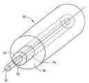 まず、図2を参照すると、本発明の方法により製造された光導波路ファイバ30が示されている。この光導波路ファイバは、中心軸33を備えた中心コア領域32と、外側ガラスコア領域34と、これらと同軸のクラッド領域36とを含む。光導波路ファイバ30は、円筒状ガラスプリフォーム70(図3)から形成され、このガラスプリフォーム70は、中心軸45を画成して内部を貫通して長手方向に延びる中心孔60を備えた中心コア領域42を有する。プリフォーム70はまた、双方とも中心コア領域42と同軸の、外側コア領域46とクラッド領域48とを含んでいる。例えば中心コア領域32,42は、ゲルマニウムをドープされた中心領域からなり、領域34,46は、種々の量の弗素および/またはゲルマニアドーパントを含む、複合屈折率輪郭(例えば secor輪郭)を備えた付加領域からなる。勿論、本発明はこれらドーパントを用いることにに限定されるものでも、複合屈折率輪郭を備えたファイバに限定されるものでもない。また、これに代わり、領域34を省略した、単純なステップ型屈折率を備えたファイバであってもよい。また、領域34は、典型的には純粋シリカからなる近似クラッド領域を含んでいてもよい。