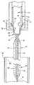 コアブランク58の近端59における中心孔60は、周囲の大気に開放されていても、あるいは固結工程に先立って、底栓66と類似の頂栓73を挿入することによって閉鎖されていてもよい。一つの実施の形態においては、このような中心孔を栓で塞ぐことを容易にするために、一体ハンドル52内の孔はスートプリフォーム58内の孔よりも大径にされており、かつ栓73のサイズは、栓73を一体ハンドル52の部分に挿入できるが、スートプリフォーム58の中心孔には嵌合するように、上記二つの孔の内径の中間値が選択される。これに代わる別の実施の形態では、頂栓73が、スートプリフォーム58の中心孔60を塞ぐのに供せられる下端のより細い部分(スートプリフォーム58内の中心孔を塞ぐのに十分な太さを有する)と、スートプリフォーム58の中心孔60に栓73が落ち込むのを防止するための上端のより太い部分(一体ハンドル52内の中心孔よりも太い)と、これら二つの太い部分を連結する中間部分とからなる。