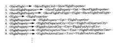 第2のレベル220(ShowFlightPropertiesがShowFlightPropertyで形成されることを示す部分)は、オプションのShowFlightProperties部分が使用されない規則2から生成される。  The second level 220 (the part indicating that ShowFlightProperties is formed with ShowFlightProperty) is generated from