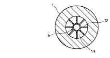 遠心分離器7は、図1、図4に示すように、多孔管5の外周面を所要の空間を隔てて包囲する固体分離室10を備えており、該固体分離室10の内部には、多孔管5の細孔6から外側に排出される流体の旋回を止めて固体を下方に移動させるための旋回止め部材11を備えている。旋回止め部材11は、図4のように固体分離室10の内面に放射状に固定され、且つ多孔管5との間に所要の隙間を隔てた幅の複数の板で構成することができる。この旋回止め部材11は、図示の形状のものに限定されるものではなく、更に旋回止め部材11は固体を下方に向かわせるように捻られていてもよい。