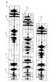 最後に、過程(108)で、処理された該オーディオブロックが最後のオーディオブロックであるかどうかが決定される。もしそうでないなら、閾値決定が過程(94)で続く。もしそうであるなら、過程(109)で、該オーディオブロックは図4Bに示す様にグループに集められる。特に、無音ブロックの隣接するセット(すなわち、相互に接触するブロック)は”無音グループ(silence group)”と呼ばれるものを形成する。 Finally, in step (108), it is determined whether the processed audio block is the last audio block. If not, threshold determination continues at step (94). If so, in step (109), the audio blocks are collected into groups as shown in FIG. 4B. In particular, adjacent sets of silence blocks (ie, blocks that touch each other) form what is referred to as a “silence group”.