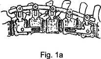 幾人かの著者が、頭方向端の椎骨ねじおよび尾方向端の椎骨ねじの骨/ねじ境界面における、かなり大きな歪力を記述した。1本ロッド器具使用区間における矯正喪失および脊柱後弯は、特に、頭方向および尾方向の境界面における骨/ねじ境界面の弛みの結果として、恐らくは不十分な構造的剛性が原因で術後早期に生じたものである。剛性1本ロッドは、術後早期では変形脊柱の矯正に十分な安定性を与えることができる。しかし、それは日常活動の間に骨/ねじ境界面でそれぞれのねじの軸回りに椎骨が回旋するのを防止することができない。その理由は恐らく、中実1本ロッドシステムには、特に、器具使用区間の頭方向および尾方向の最端の椎骨において、それぞれの椎骨上に固定点が2つ存在しないことである。 Several authors have described significant strain at the bone / screw interface at the vertebral screw at the cranial end and the vertebral screw at the caudal end. Loss of correction and kyphosis in the single rod instrument use section are prematurely postoperative, possibly due to insufficient structural stiffness, possibly as a result of loosening of the bone / screw interface at the head and tail interface This is what happened. A single rigid rod can provide sufficient stability to correct the deformed spine early in the surgery. However, it cannot prevent rotation of the vertebra around the axis of each screw at the bone / screw interface during daily activities. The reason is probably that the solid single rod system does not have two fixation points on each vertebra, especially at the extreme vertebrae in the head and tail directions of the instrument use section.