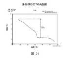 形体Eの典型的な熱的特性を、図24にプロットする。通常、形体Eは、約125℃に至るまでに、約10.58%の揮発分を損失しており、溶媒和物質であることを示している。さらに約1.38%損失する、第二の重量損失は、約125℃と約175℃との間に観察される。約175℃以上の重量損失は、分解に起因する。カールフィッシャー、及びTG-IR実験は、形体Eの該揮発分の重量損失が、水のためであるという結論をサポートしている。形体Eの典型的なDSC曲線は、約99, 161 及び269℃で吸熱を示す。高温顕微鏡法実験の間の観察に基づいて、約99、及び161℃での該吸熱は、揮発分の損失に起因する。約269℃での吸熱は、高温実験に基づいて、融解に起因する。Typical thermal properties of feature E are plotted in FIG. Typically, Form E loses about 10.58% volatiles up to about 125 ° C., indicating that it is a solvated material. A second weight loss, further loss of about 1.38%, is observed between about 125 ° C and about 175 ° C. Weight loss above about 175 ° C is attributed to decomposition. Karl Fischer and TG-IR experiments support the conclusion that the volatile weight loss of Form E is due to water. A typical DSC curve for Form E shows endotherms atabout 99, 161 and 269 ° C. Based on observations during high temperature microscopy experiments, the endotherm at about 99 and161 ° C. is due to loss of volatiles. The endotherm at about 269 ° C. is due to melting based on high temperature experiments.