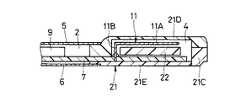 FIG. 2 is a cross-sectional view showing a card type wireless communication terminal device viewed from the direction of arrows II-II in FIG.