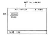 なお、このアルバム選択画面W20の下側に表示されるフォーマット形式の選択ボタン表示には、挿入されたメモリカード40に存在したコンテンツ管理ファイルのフォーマット形式だけが表示される。したがって、例えばこのメモリカード40にMPV形式のコンテンツ管理ファイルしか存在しなかった場合には、「PASS」と「HighMAT」の選択肢は、アルバム選択画面W20に表示されないこととなる。  Note that only the format format of the content management file existing in the inserted