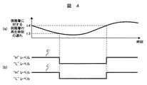 図3及び図4は、上記図2における遅延回路12の切替信号Cの生成処理を示すタイミング図であって、図2に対応する信号には同一符号をつけている。図3(a)、(b)、及び、図4(a)、(b)の時間軸はそれぞれ一致しているものとする。  3 and 4 are timing charts showing the generation processing of the switching signal C of the