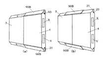 また、本実施形態の第2変更例として、機能ユニット4の上下両端部は、図に13(a)に示すように、係止溝23を有するテーパ部21を有し、連結部材90Bは、前記テーパ部21に摺動接触するとともに、一端に係止溝23に嵌め込まれるフック93を有するように形成されることが好ましい。この場合は、機能ユニットの上下両端部それぞれにおいてテーパ部21に連結部材90Bがはめ込まれた後、図13(a)の矢印で示されるように、隣接する機能ユニットに向けて連結部材90Bをスライドさせる。これにより、図13(b)に示すように、隣接する機能ユニット4間の安定した機械的接続が連結部材90Bの使用によって得られる。  As a second modification of the present embodiment, the upper and lower end portions of the