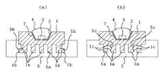 また、基板1の各係止部1b、1d及びこれらに対応する各被係止部5b、5dは基板の凹部7の中心軸に対して左右非対称である。