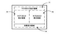 また、複数のロボット動作プログラムを表示する従来の装置について、図8〜図10を使って説明する。図8は、動作プログラム/状態表示部の表示画面の表示領域を、マスタタスク表示領域71、サブ1タスク表示領域72、サブ2タスク表示領域73、状態表示領域74に分割し、図9のフローチャートに従って同期して動く複数の動作プログラムを図10に示すように連動させながら表示する。  図10は左側に図9のフローチャートを、右側には図8のロボットの各動作プログラムによる状態表示画面を示し、図9のフローチャートにより図8の表示が制御される様子を示している。(特許文献2参照)。As a conventional program of a robot control apparatus that controls a plurality of robots, there is a sequence program as shown in FIG. In the first sequence program of FIG. 7,