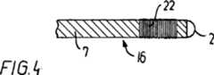 別法として、図2に示されたタイプのガイドワイヤ遠位端部分16に、0.05mm〜0.35mmのような非常に小さなワイヤ直径を有する放射線不透過性ワイヤのコイル22を配設することができる。このコイルはワイヤの直径に対応するピッチ間隔を有する。従って、コイル22は、トルクを伝達することができないし、また、非常に柔軟性である。その結果、ガイドワイヤ遠位端部分の所望特性は、ガイドワイヤにコイル22を追加しても損なわれない。図6に示される本発明による別の実施態様では、先端部2は放射線不透過性材料製であり、ガイドワイヤの中空状内部空間を遊離端まで中心を通って延びる同様な材料製の糸又はリボン23を包含する。更に、図5に示されるように、ワイヤ7の延長部に放射線不透過性材料の非常に軟質なコイル24で示されるような遠位端先端部材を配置することもできる。このようなコイルは例えば、約35mmの長さ16を有することができる。先端部を可視性にすることに加えて、これは非常に柔軟で、曲げやすい先端部材としても機能することもできる