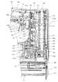 駆動モータ113の回転出力は、遊星歯車式の減速機構115を介してハンマ駆動機構119に回転運動として伝達される。ハンマ駆動機構119は、図2および図3に示すように、互いに噛み合い係合して鉛直面内で互いに逆方向に回転する回転体としての上、下のギア133,135と、それらギア133,135の回転動作に伴い前記ハンマ125を上方へと押し上げる上下のリフトローラ137,139(図2参照)とを主体にして構成されている。  The rotational output of the