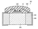 が透明樹脂で形成された樹脂封止体206により埋設されてなる。特許文献2には、このような構成を備えることによって、LEDチップの発熱を効率的に放熱させることができ、生産性に優れた表面実装型のLED部品およびその製造方法を提供できると記載されている。Further, for example, Japanese Patent Laid-Open No. 2006-287020 (Patent Document 2) discloses an