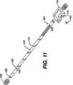 穿孔具80の近位端は、長穴98が貫通する結合スリーブ96に取り付けられており、長穴98の幅広の中央部分の中には、横方向に形成された開口部102が形成されている。長尺で金属製の管状カッター104は、このカッターが遠位および近位の両方向に容易に摺動できるように、結合スリーブ96の長穴98および穿孔具80の穿孔用の管腔84に対して軸方向に一列に整列されている。カッターガイド106は、結合スリーブ96の近位端に配されている。カッターガイド106は、カッター104と結合スリーブ96との間で適切な整列を保証する金属製の漏斗形状ガイドの形態を採ることができる。結合スリーブ96およびカッターガイド106は、下部ケース52から延在する一体形成型の支持リブ107および上部ケース50の遠位端に設けられた一体形成型のハウジング108によって、プローブの上部ケース50と下部ケース52との間に支持されている。これらの一体形成型の支持リブ107およびハウジング108は、プローブの上部ケース50および下部ケース52に形成されたスロット110および開口部112と一緒に、カッターが遠位および近位の両方向に容易に平行移動できるように、カッター104と結合スリーブ96との間での適切な整列を保証するものである。第1減圧チューブ32の遠位端は、結合スリーブ96の横方向に形成された開口部102に堅く挿入する重合体製の減圧用取付け具113に取り付けられている。開口部102は、管腔90と流体的に連通しており、穿孔用の管腔84が減圧穴92を介して減圧システム22内の減圧容器と流体的に連通することを可能にする。  The proximal end of the piercing