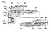 ここで、図12に示すように突出段部25の平面25aである突出面は、送気送水ノズル34の先端部よりも先端側に配置されている。これにより、突出段部25の平面25aが被検体に当接された際に、送気送水ノズル34の先端部が被検体に引っ掛かることが防止されている。  Here, as shown in FIG. 12, the projecting surface, which is the