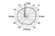 そして、前記の条件で実験を行った結果、実施例1において、図8に示す特性線L1が得られ、実施例2において、図9に示す特性線L2が得られ、実施例3において、図10に示す特性線L3が得られた。また、比較例において、図11に示す特性線Mが得られた。なお、図8〜図11中に点線で示す径方向の軸は利得を示している。 As a result of the experiment under the above conditions, in Example 1, the characteristic line L1 shown in FIG. 8 is obtained, in Example 2, the characteristic line L2 shown in FIG. 9 is obtained, and in Example 3, the characteristic line L1 is obtained. The characteristic line L3 shown in FIG. 10 was obtained. Further, in the comparative example, the characteristic line M shown in FIG. 11 was obtained. Note that the radial axis indicated by the dotted line in FIGS. 8 to 11 indicates the gain.