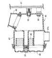 上記インバータ55は,その下端面に突設された複数の支持軸56(図4参照)をグロメット57を介して吸気ボックス34の底壁に支持させると共に,上端の複数の耳片58を吸気ボックス34の端板37にボルト59で結合することにより,吸気ボックス34に取り付けられる。その際,インバータ55の周囲には充分な通風間隙が設けられる。 The