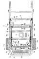 フレーム2の左右の側壁板2b,2bの上端には,互い内向きに水平に屈曲した平坦部91,91が形成され,これら平坦部91,91の後端部間を面一で連結するように上部クロスメンバ2cが配置され,これら平坦部91,91及び上部クロスメンバ2cにより平面視でコ字状で平坦なタンク支持部92が構成される。上部クロスメンバ2cの後半部94は,前記マフラボックス73の傾斜部93の上端に連なる連続する傾斜部94に形成され,これら傾斜部93,94により,その上面に降る雨水を速やかに流下させるようになっている。