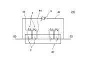 なお、図中では模式的に一つのダイオードの記号しか記載していないが、この場合にはツェナーダイオード6の数量は特に限定されず、第1バイパス回路12,32において複数のツェナーダイオード6を直列に接続することができる。例えば、市販されるツェナー電圧が5.6Vであるツェナーダイオードを使用する場合、該ツェナーダイオードを40個〜42個ほど直列に接続することによって、第1バイパス回路に通電される電圧値を概ね224V〜235.2Vに設定することができる。The Zener voltage of the