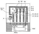 このようなスイッチ素子31〜33として、ショットキーダイオード、PINダイオード、MEMS、FET(Field Effect Transistor )やSPDT(Single Pole Double Throw)等を用いることができ、かかるスイッチ素子31〜33の切り換え制御を、制御IC403からの直流制御電圧によって行う。On the other hand, the additional radiation electrodes 3-1 to 3-3 are connected to the