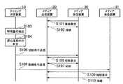 第2の実施の形態に係るタイミング決定システムは、図8に示すように、タイミング決定装置10と、メディア送信装置20と、メディア受信装置30、31とを備える。ここでは、現在、メディア受信装置30で再生されているメディアを、適切なタイミングでメディア受信装置31へ移動させるサービスを行うこととする。又、メディア受信装置30、31としては、例えば、携帯電話、PHSなどが使用されるが、後に詳述するメディア再生機能、メディア受信機能を有する機器であれば構わない。  As shown in FIG. 8, the timing determination system according to the second embodiment includes a