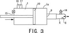 別のスペーサの実施形態が図2に示される。このスペーサは特に、乾燥粉末吸入器(DPI)と共に動作するように構成される。DPIは通常、患者の吸息の流れによって作動する。DPIは、安定的にトリガされないので、吸息が非常に少ない患者には適していない。DPIは、患者が彼または彼女の肺の中に吸入する微細な粉末の形状で薬剤を放出する。従来のMDIと同じように、従来のDPIは、与えられた投与量のほとんどが患者ののどの後部に密着するという欠点を有する。図2と図3を参照すると、筐体1aは保持チャンバ1を画定し、保持チャンバ1にロードすることと、保持チャンバ1を空にすることの両方に使用される第1のポート9を含む。またスペーサはチャンバ1内で動くことのできるピストン10を含む。ピストン10を後ろに引くと、空気またはガスが第1のポート9を介して保持チャンバ1に吸い込まれ、ピストンの背後に入った空気は第2のポート11を介して逃げる。