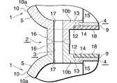 また、上記実施形態1〜3において、ライナ(1)は、第1ライナ構成部材(9)と、第2および第3ライナ構成部材(10)(11)とを接合することにより形成されているが、これに限定されるものではなく、第1ライナ構成部材(9)と第2ライナ構成部材(10)および第3ライナ構成部材(11)のうちのいずれか一方とが一体化された形状のライナ構成部材と、第2ライナ構成部材(10)および第3ライナ構成部材(11)のうちのいずれか他方とが接合されることにより形成されていてもよい。 In the first to third embodiments, the liner (1) is formed by joining the first liner constituent member (9) and the second and third liner constituent members (10) (11). However, the shape is not limited to this, and the first liner constituting member (9), the second liner constituting member (10), and the third liner constituting member (11) are integrated with each other. The other liner constituent member may be formed by joining one of the second liner constituent member (10) and the third liner constituent member (11).